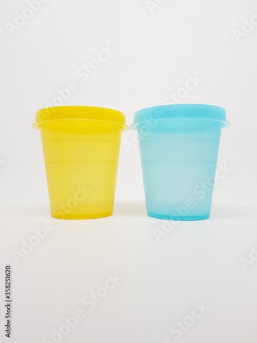 colorful plastic container over white background
