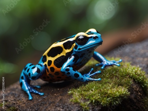 Colorful Poison Dart Frog Close-Up in Tropical Rainforest Habitat