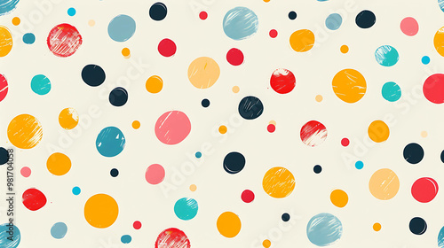 Colorful polka dots on a white background.