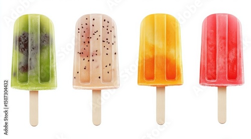 Colorful popsicle vector set isolated on white background, realistic summer ice cream illustration