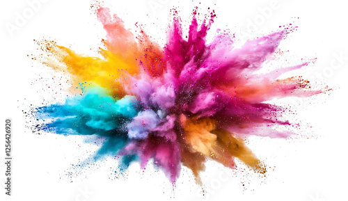 Colorful powder explosion bomb isolated on white background PNG.AI GENERATED