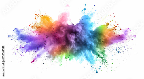 Colorful powder explosion in vibrant rainbow colors, isolated on a white background.