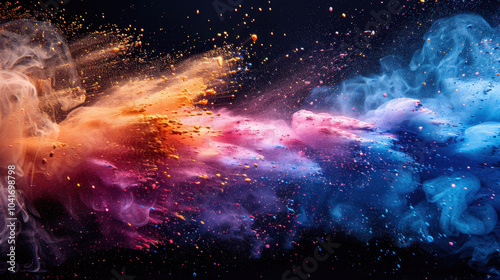 Colorful powder explosion on a black background, colorful holi paint splash in the air.