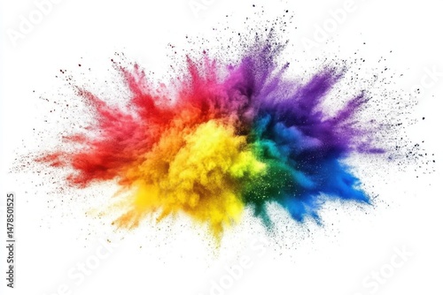 Colorful Powder Explosion on White Background Abstract Art Concept Studio Shot Rainbow Hues Vibrant Pigments Bursting Motion Isolated