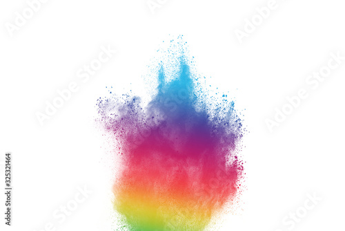 Colorful powder explosion on white background. Colored cloud. Colorful dust explode. Indian festival Holi