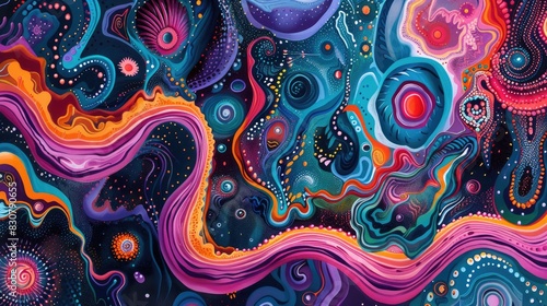 Colorful Psychedelic Textile Prints with Abstract Geometric Swirls and Fractal Designs