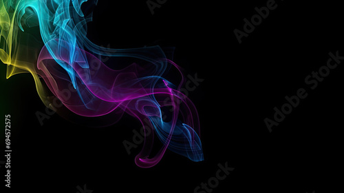 Colorful purple, green, yellow, blue smoke on black background. Abstract background concept, copy space for text