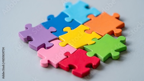 Colorful Puzzle Pieces Connected Together – Teamwork and Problem-Solving Concept