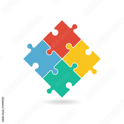 Colorful puzzle pieces forming a square in movement