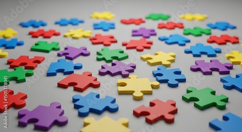 Colorful Puzzle Pieces on a Grey Background