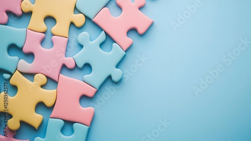 Colorful Puzzle Pieces on Blue Background