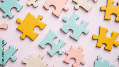 Colorful puzzle pieces scattered on a soft background, showcasing a playful and engaging design.