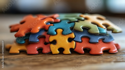 Colorful Puzzle Pieces Stacked Together On Wood