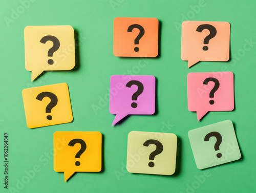 Colorful question marks in speech bubbles make an engaging background for creative projects