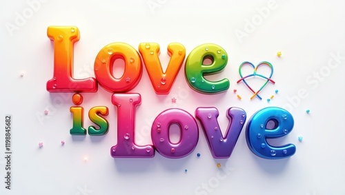 Colorful Rainbow Love Is Love Text 3D Render with Decorations