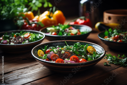 Colorful Raw Salad Bowls Feast - Generative Ai