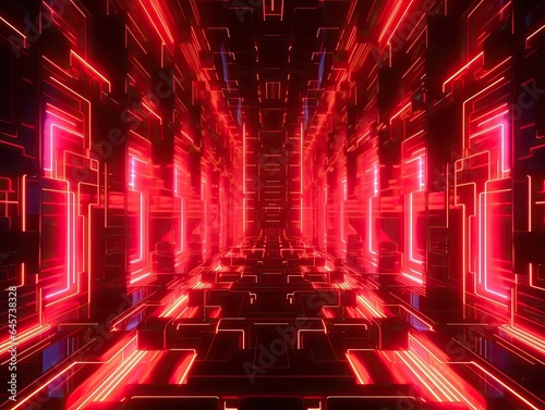 Colorful red grid geometric neon light background. cyber wallpaper. Technology. Building. Architecture. City. Futuristic Generative AI