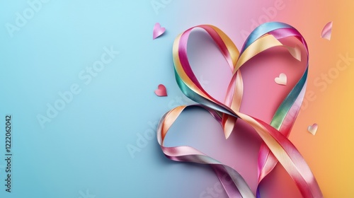 Colorful Ribbons Shaping a Heart Against a Gradually Colored Background with Small Heart Accents