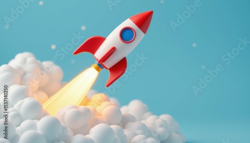 Colorful Rocket Model Launch Fantasy Sky Digital Art Vibrant Environment Dynamic Viewpoint