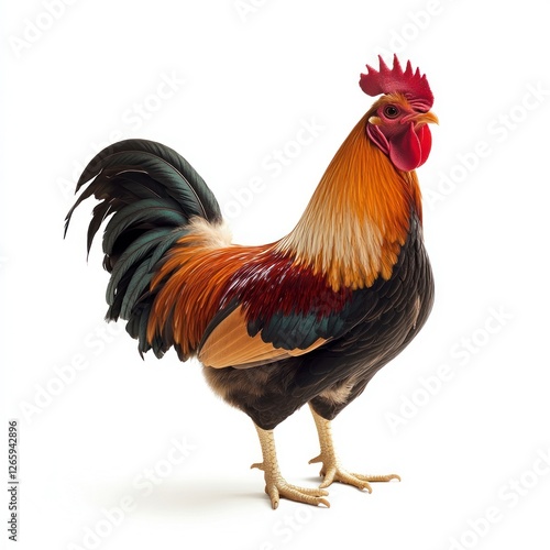 Colorful rooster on a white background, no shadows, no text space in the picture