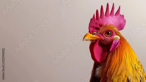Colorful Rooster Portrait Farm Animal Poultry Bird Vivid Feathers Close up Rural