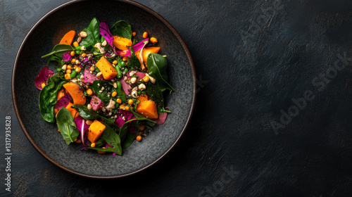 Colorful salad with a variety of fresh vegetables displayed artfully for gastric health and nutritional benefits