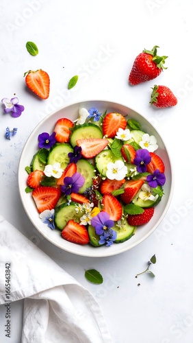 Colorful salad with strawberries and cucumbers