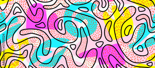 colorful seamless pattern. with randomly arranged spots and dots and lines.