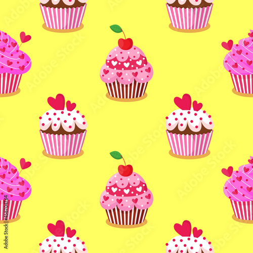 Colorful seamless pattern with sweet delicious cupcakes. Vector illustration