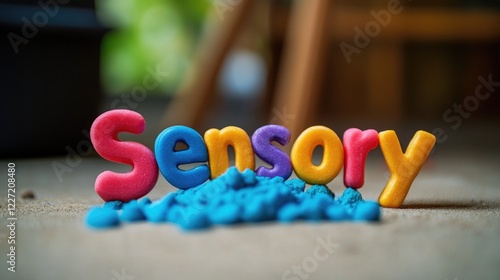 Colorful sensory play with alphabet letters and blue kinetic sand
