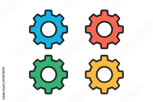 Colorful Settings Gear Icon Vector Set, Modern Cogwheel Symbols for System Preferences, Colorful Mechanical Gearwheel Illustration with Transparent Background