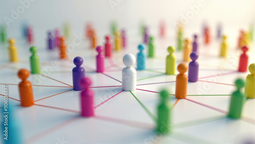 Colorful shapes connected by lines depicting social networks, human interactions, and collaborative communications