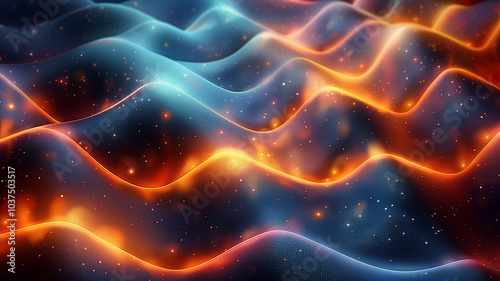 Colorful, shiny and sparkling Waves. 3d rendering. Wave. Abstract 3D Background, flowing texture. Nice waves. Dynamic Flowing backdrop.