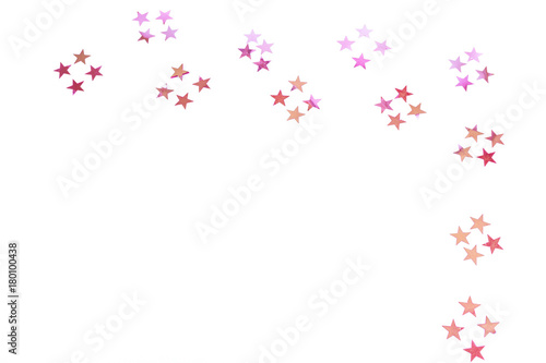 Colorful shiny stars on a white background, copy space