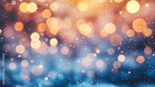 Colorful shiny winter background with snowflakes and bokeh light