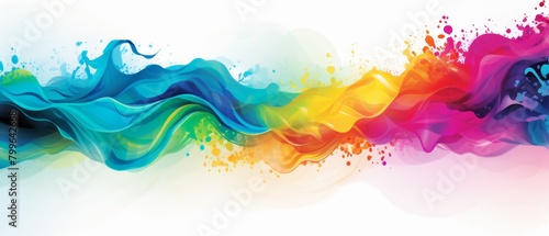 Colorful shockwave effect with a splash of rainbow hues against a bright white background, designed for cheerful event promotions,
