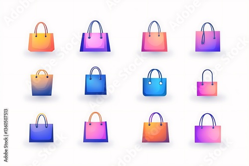 Colorful Shopping Bags Displayed Against a White Background
