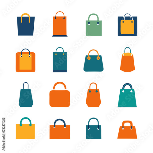 Colorful shopping bags vector set arranged on white background