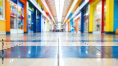 Colorful Shopping Mall Corridor with Vibrant Storefronts