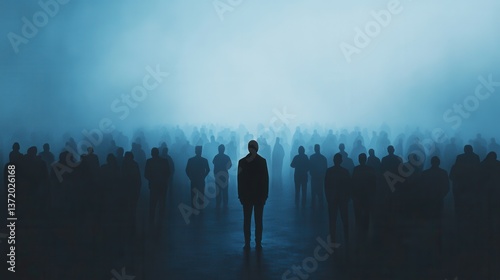 Colorful silhouette pf person standing in monochrome crowd of different people,surreal unique and different concept,loneliness in society,shadow,freedom,Love,be yourself,Stand out from the crowd.