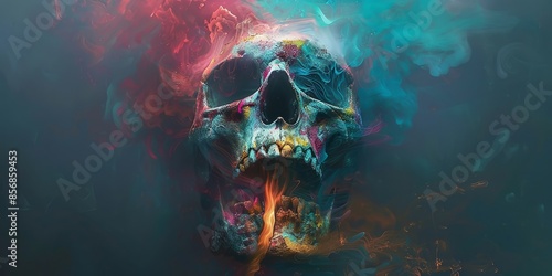 Colorful Skull Art with Fiery and Smoky Atmosphere