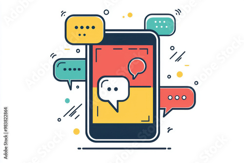 Colorful smartphone illustration with chat bubbles, symbolizing modern communication and digital interaction.