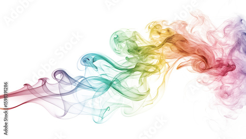 Colorful smoke plume swirling and dissipating into the distance on transparent background