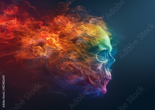 Colorful Smoke Skull: Gradient Skull Facing Right Against Black Background