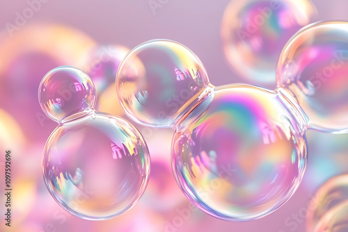 Colorful soap bubbles floating against a soft pastel background in a playful and whimsical atmosphere