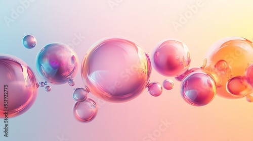Colorful soap bubbles floating against a soft pastel background in daylight