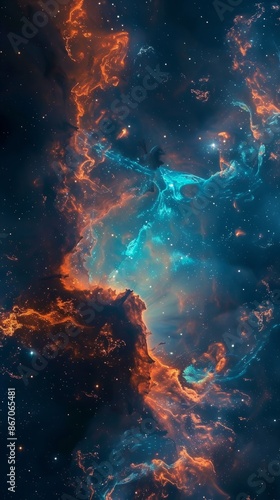 Colorful, space-themed abstract forms wallpaper. Beautiful abstract background. Space and galaxy theme.