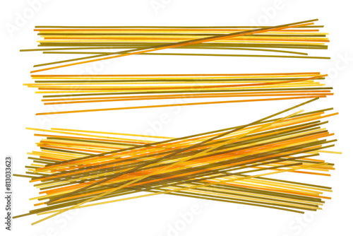 Colorful spaghetti tricolore pasta isolated on white background. Top view. Flat lay