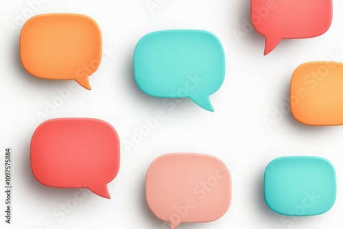Colorful speech bubbles in various shapes, illustrating communication and dialogue themes.