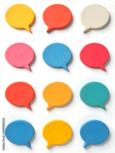 Colorful speech bubbles of different hues are arranged on a white backdrop, great for design needs.